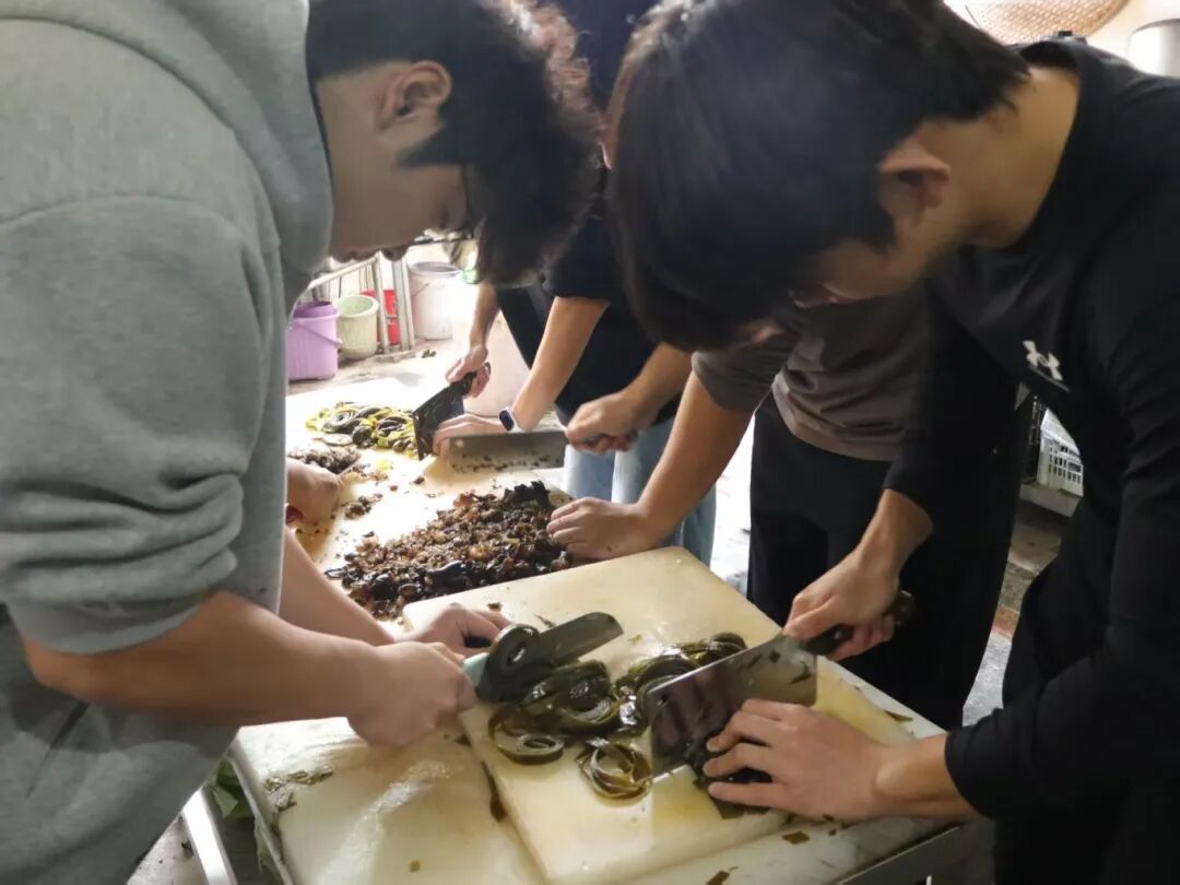 另一部分志愿者则主动承担起后勤工作,认真择菜、切菜,有条不紊地为午餐忙碌,默默做好保障。
