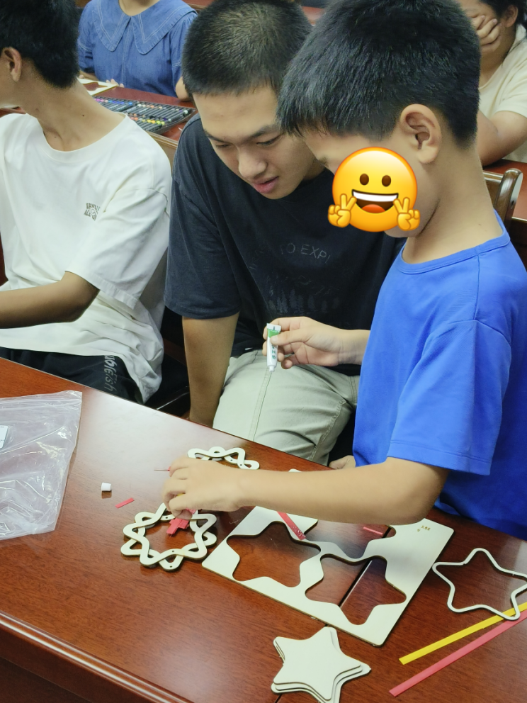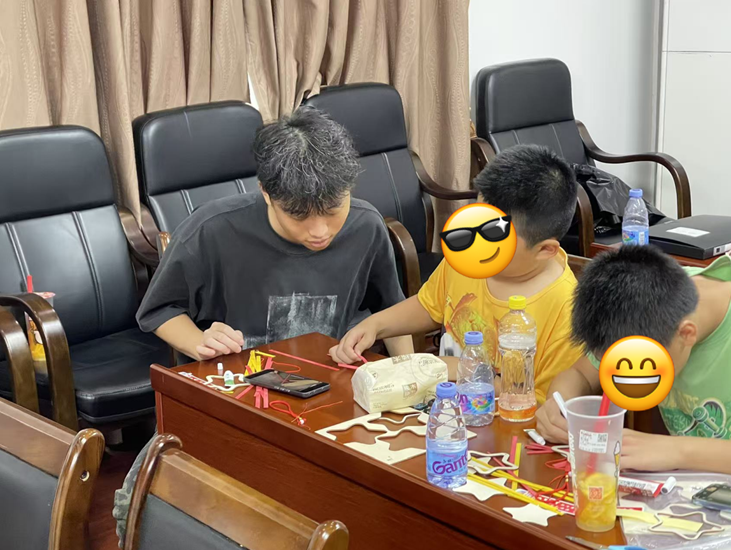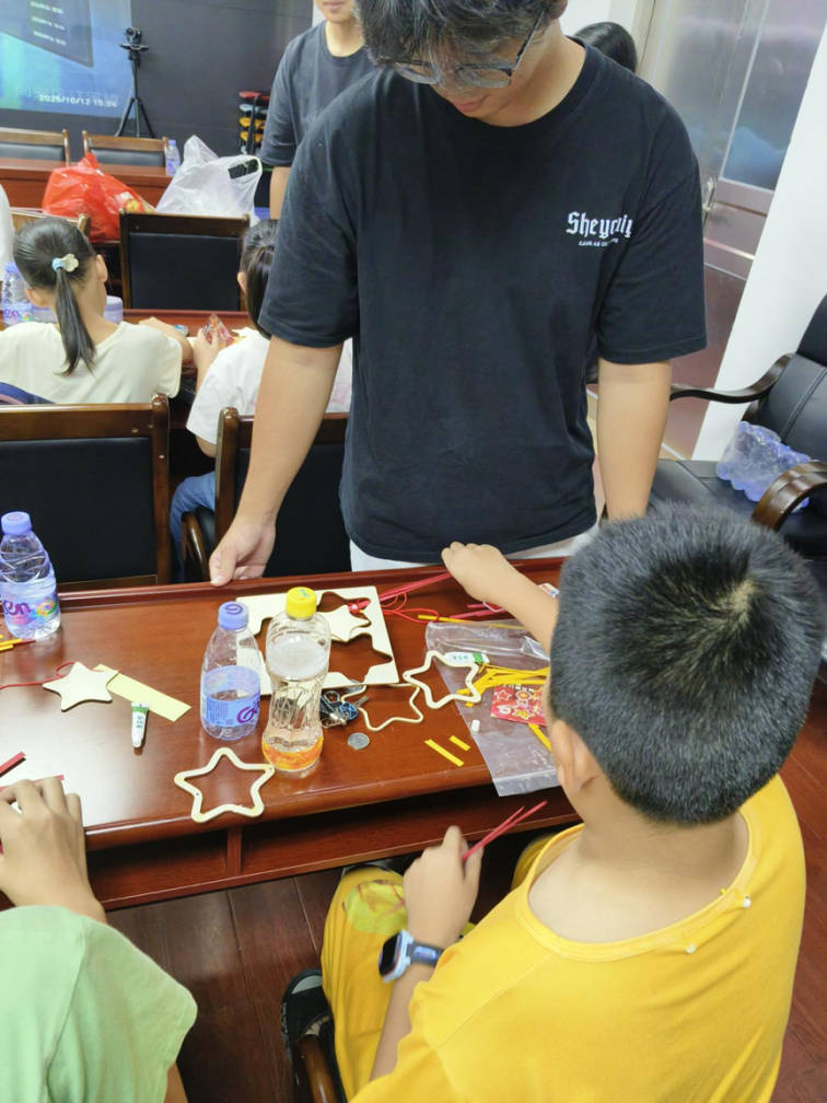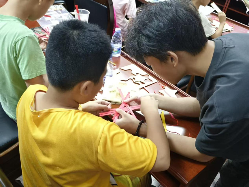 在活动过程中,新生志愿者们积极且耐心的为儿童们讲解题目与孩子们一起完成手工作品。