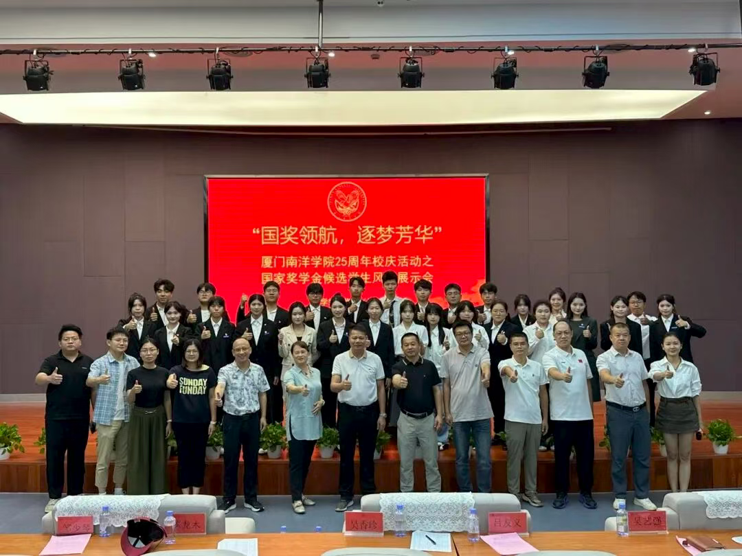 2025年10月17日我校在仙岳报告厅举办“国奖领奖,逐梦芳华”厦门南洋学院25周年校庆活动之国家奖学金候选学生风采展示会。