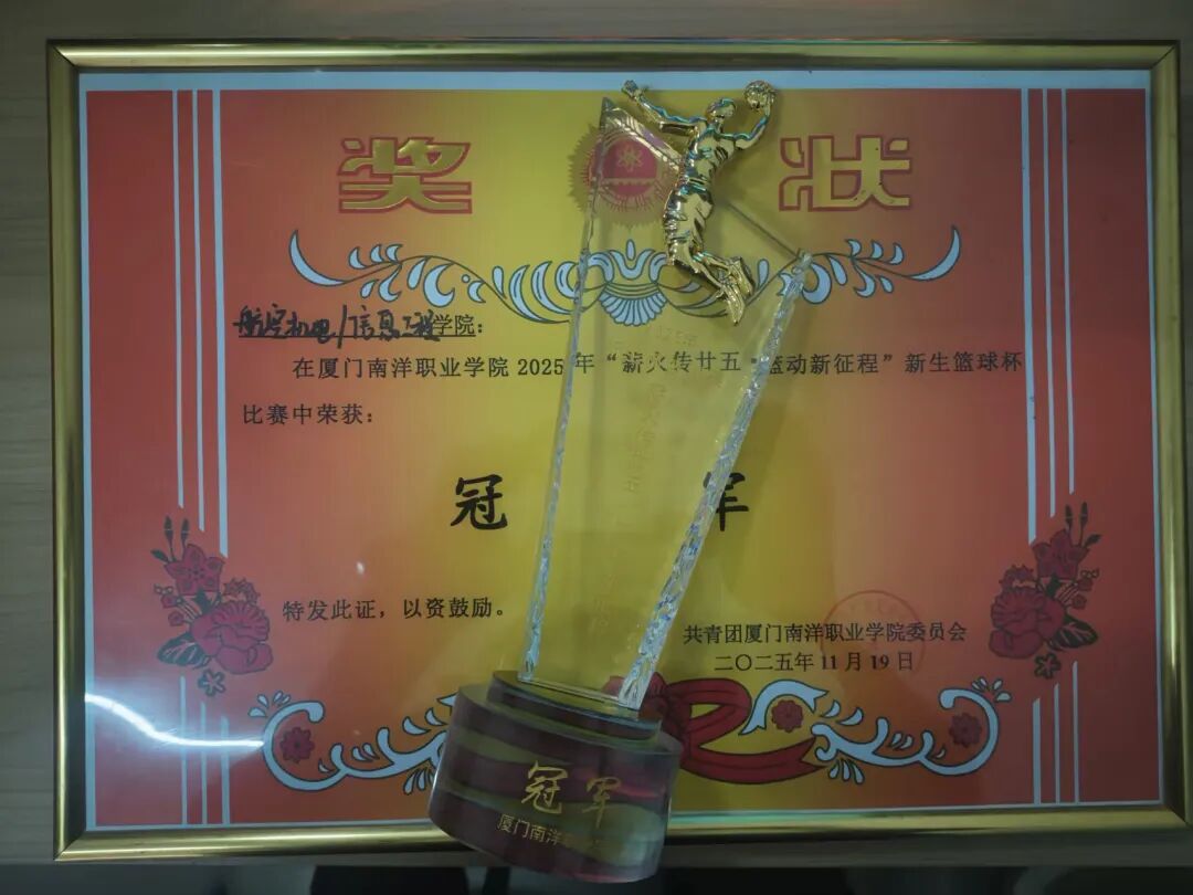 热烈祝贺我院新生篮球队在 2025 年 11 月 19 日圆满落幕的 “薪火相传廿五・篮动新征程” 新生篮球杯校赛中,历经多轮激烈角逐,一路披荆斩棘、奋勇拼搏,最终以无可匹敌的实力斩获冠军桂冠,为学院赢得崇高荣誉!