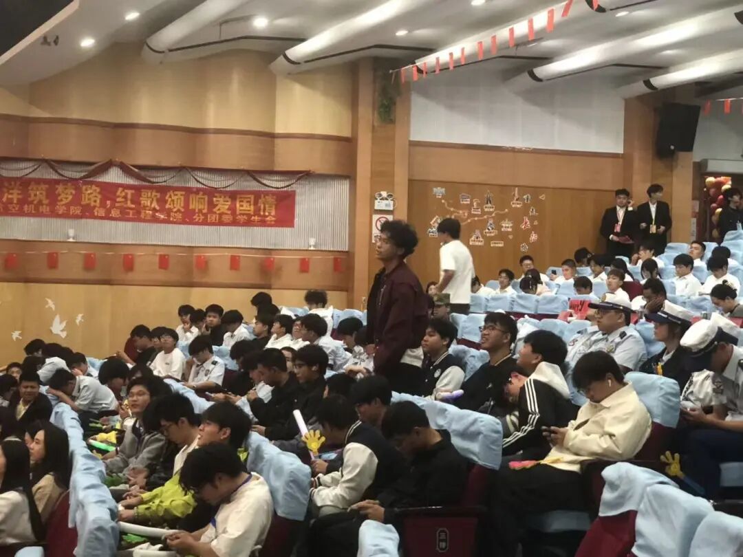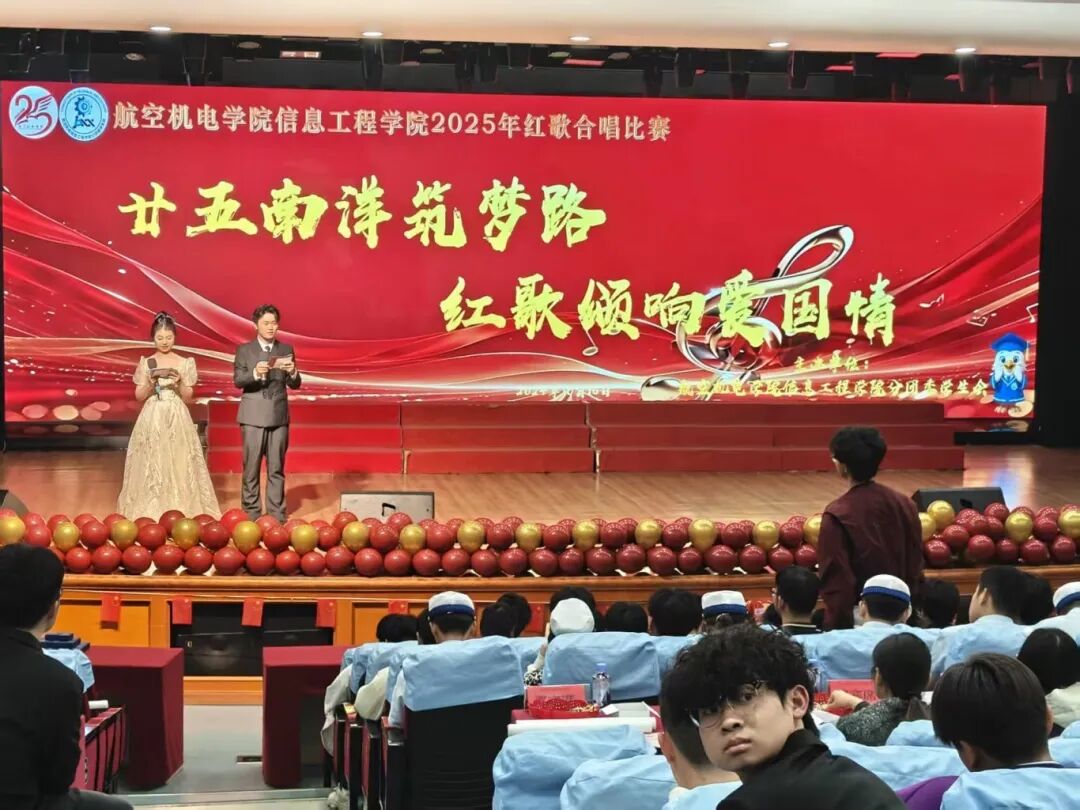 2025年12月4日19:00,航空机电学院/信息工程学院在创业活动中心小礼堂举办的 “廿五南洋筑梦路,红歌颂响爱国情”红歌赛。旋律里藏着青春理想,歌声中饱含爱国热忱,一曲曲经典曲目轮番上演,既有激昂奋进的力量,又有婉转深情的韵味,为现场观众带来沉浸式视听享受,让红色激情随音符涌动,让青春精彩在舞台绽放!
