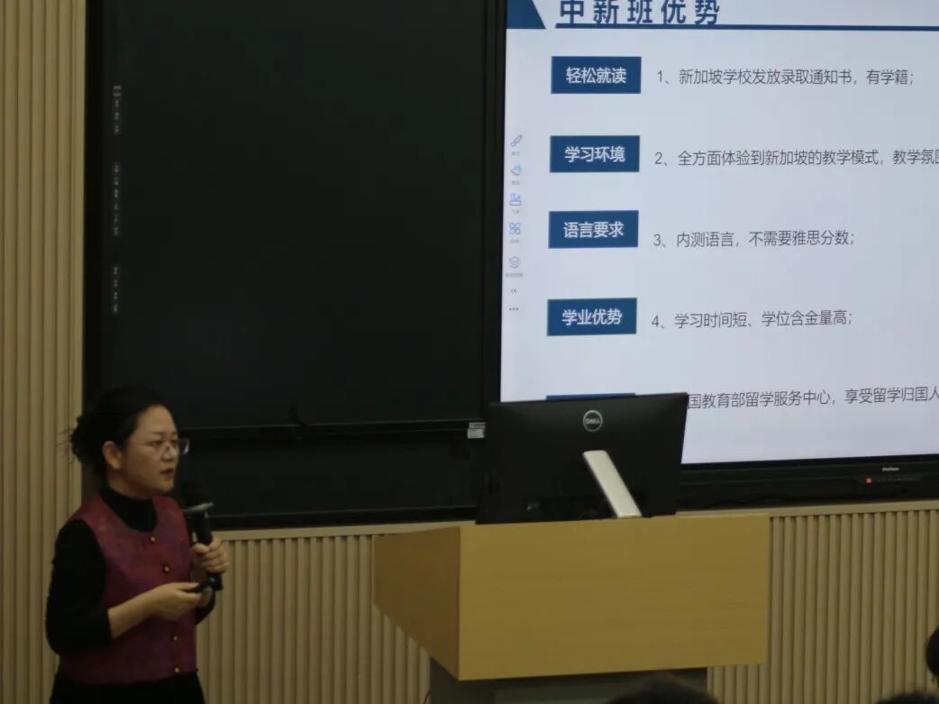 海外学院陈凤炜老师在分享中指出,新加坡以安全多元、高度国际化的 “未来之城” 特质,让留学意义不止于一纸文凭。学生将在 ERC 创业管理学院,与全球同学并肩研习 Facebook、联合利华等名企真实案例,在实践中掌握前沿商业技能。旅程以全英排名前列的英国奇切斯特大学荣誉学士学位收官,学历获中国教育部认证,是未来就业、落户与发展的强力通行证,兼具高效与高性价比优势。学校更与加拿大公立尼亚加拉学院合作两周研学营,打造 “国际视野课堂 + 行业探索 + 北美文化体验” 的复合型成长平台,践行 “体验式学习” 理念,助力学生提升全球职场竞争力。