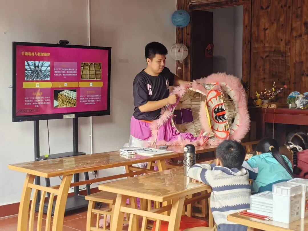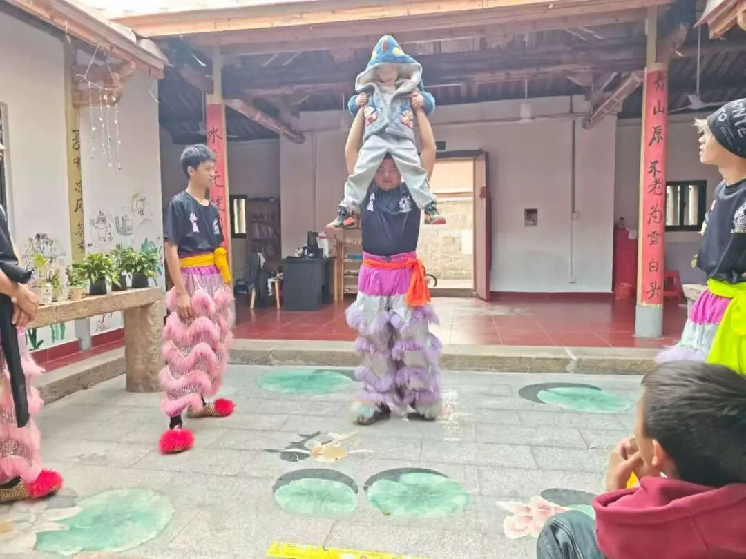 理论知识过后,最令人期待的舞狮表演闪亮登场!伴随着铿锵有力的锣鼓声,志愿者们操控着色彩鲜艳的狮头,腾、挪、闪、扑,将瑞狮的灵动与威武展现得淋漓尽致。孩子们纷纷化身“小狮子”,在志愿者的指导下体验舞狮的乐趣,学堂里瞬间变成一片欢乐的海洋。
