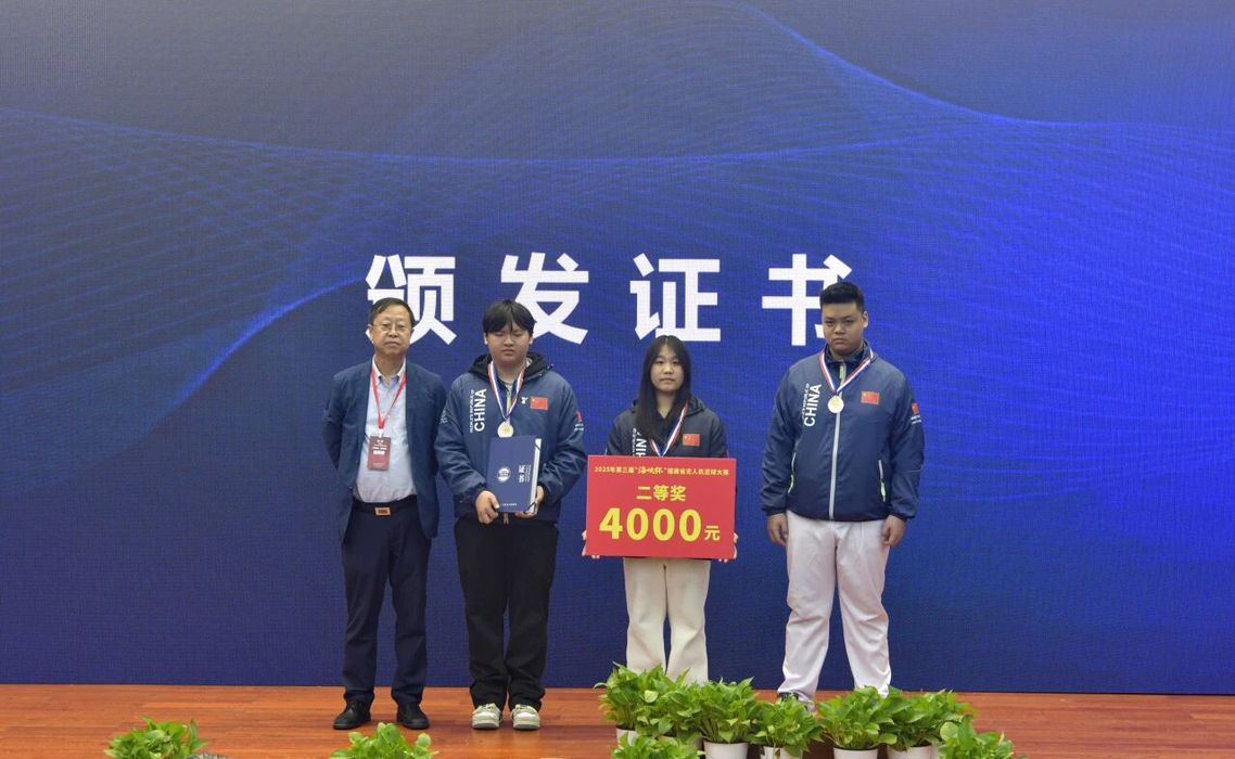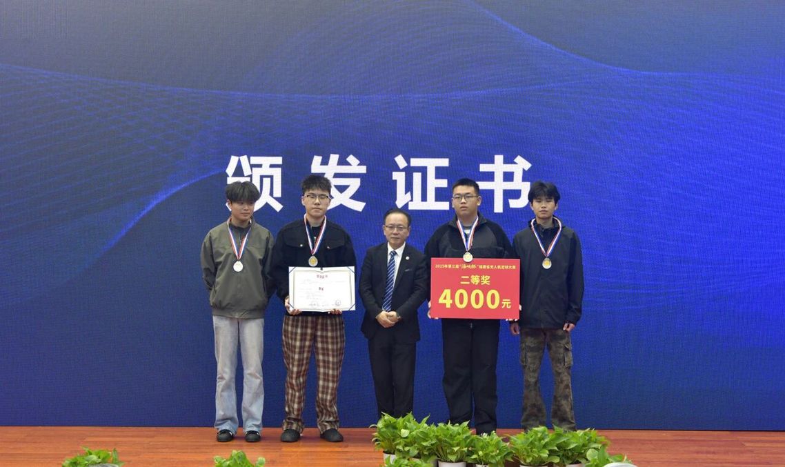 刘大响院士、曲国胜专家、李健军会长分别为福建省无人机足球大赛冠、亚、季军颁发获奖证书。